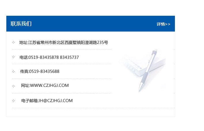 地址:常州市新北區(qū)友邦商務(wù)大廈1幢16、17層  電話:0519-85101652  傳真:0519-85112595  郵編:213022  網(wǎng)址:www_cz-jiayue_cn.ahrtzy.com  郵箱:xiajifengaa@163.com